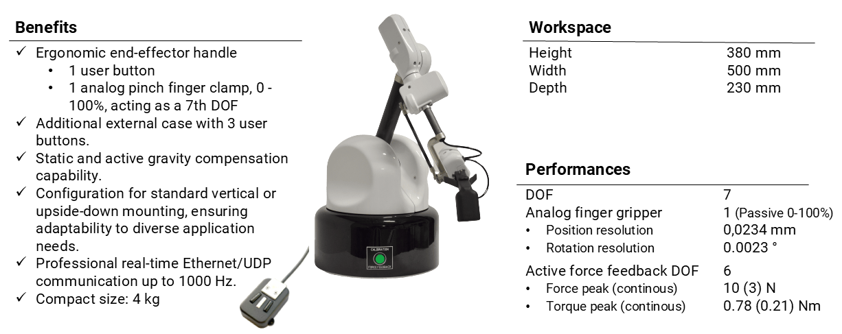 The perfect desktop tool, as the 6 degree of freedom (DOF) comes with force feedback and high resolution measurements.